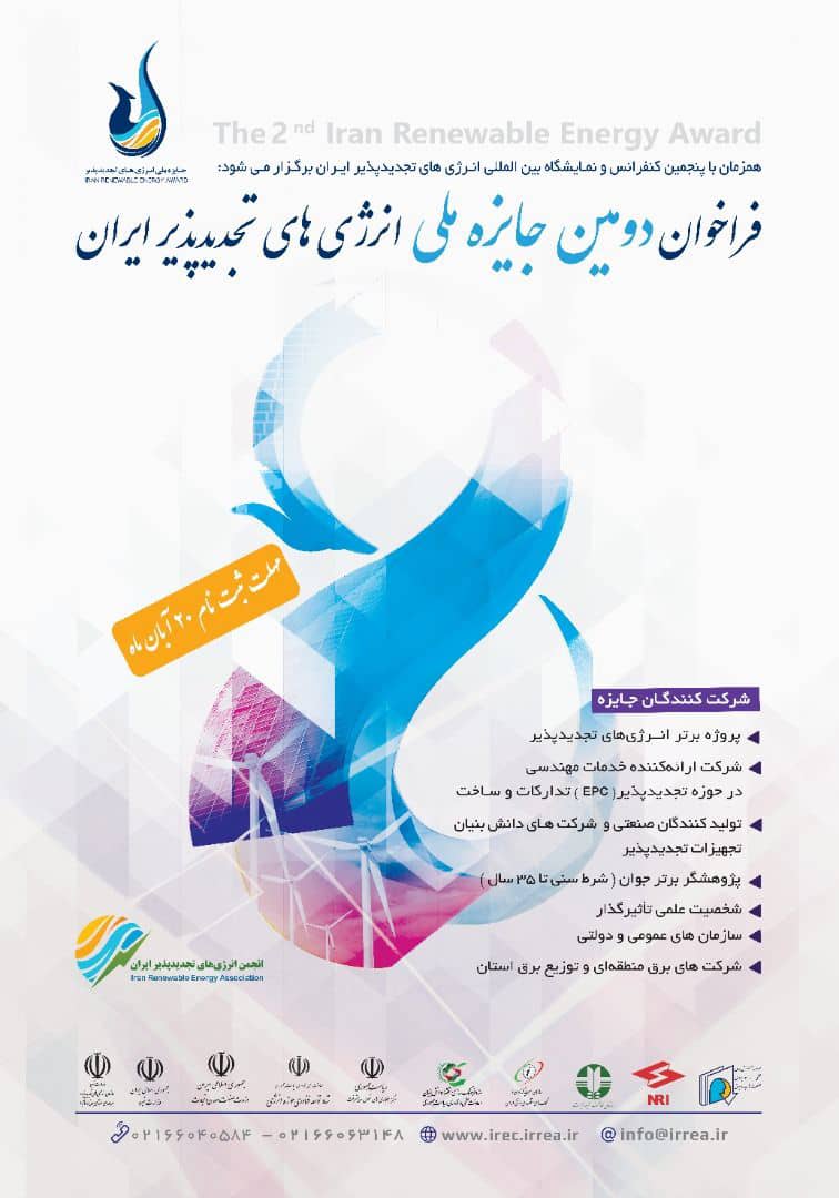 همچنین به منظور ایجاد بستری مناسب جهت معرفی الگوهای برتر در زنجیره توسعه انرژی های تجدیدپذیر کشور با همت انجمن انرژی های تجدیدپذیر ایران و حمایت معنوی وزارت نیرو و ساتبا و مشارکت دیگر انجمن های مرتبط، جایزه ملی انرژیهای تجدیدپذیر به فعالان این حوزه اعطا می شود. در دومین دوره از این جایزه ملی، پروژه برتر انرژی های تجدیدپذیر، سازمان های عمومی و دولتی، تولیدکنندگان تجهیزات انرژی های تجدیدپذیر، شرکت های توانمند EPC (کوچک مقیاس و بزرگ مقیاس)، شرکت های برق منطقه ای و شرکت های توزیع برق، ، شخصیت علمی تأثیرگذار، پژوهشگر جوان برتر از دریافت کنندگان این جایزه خواهند بود.